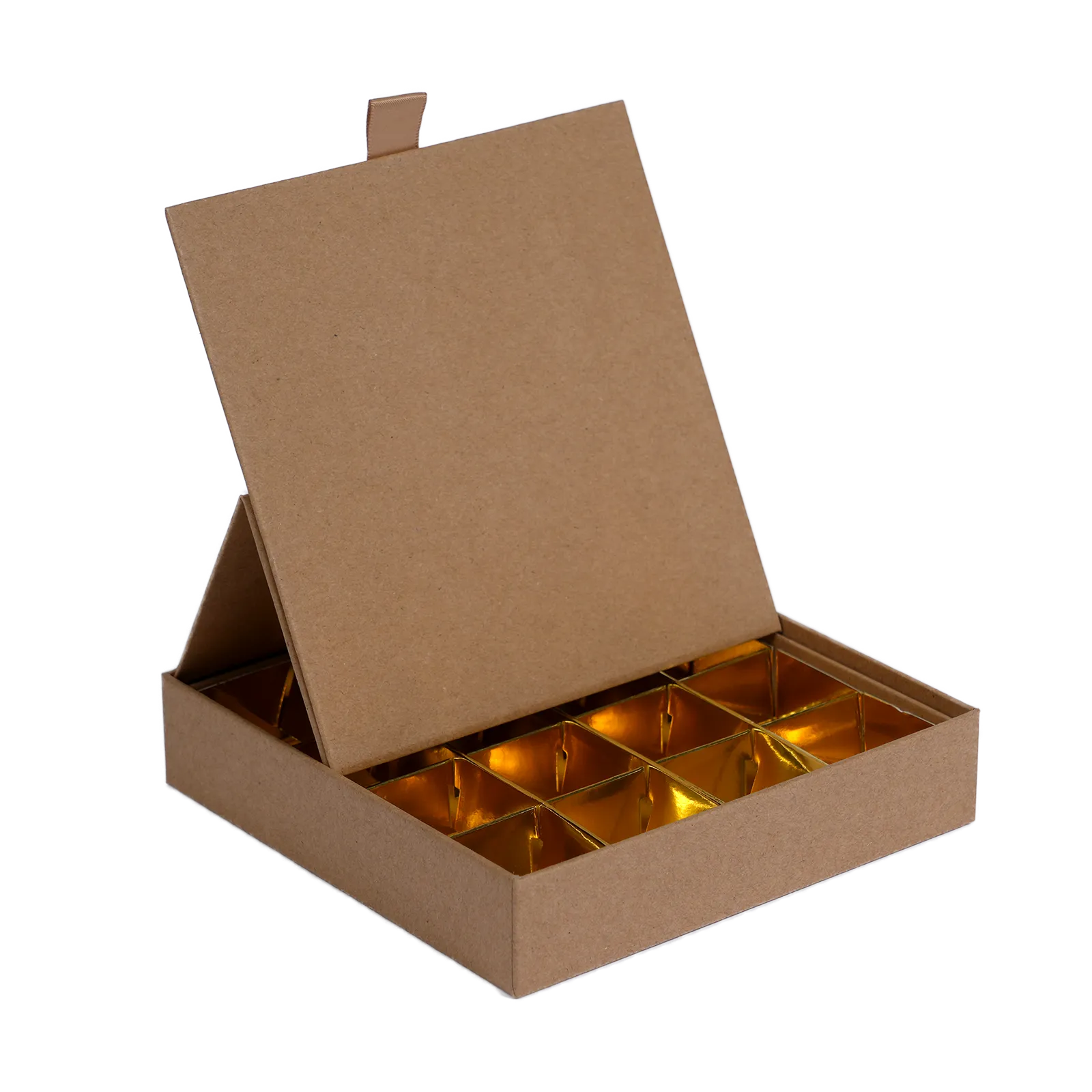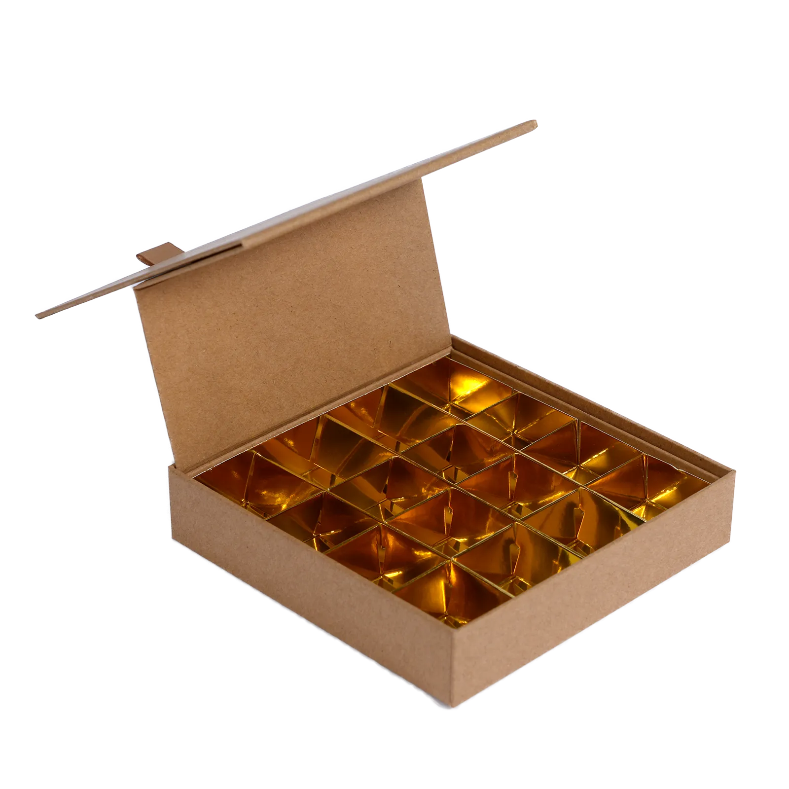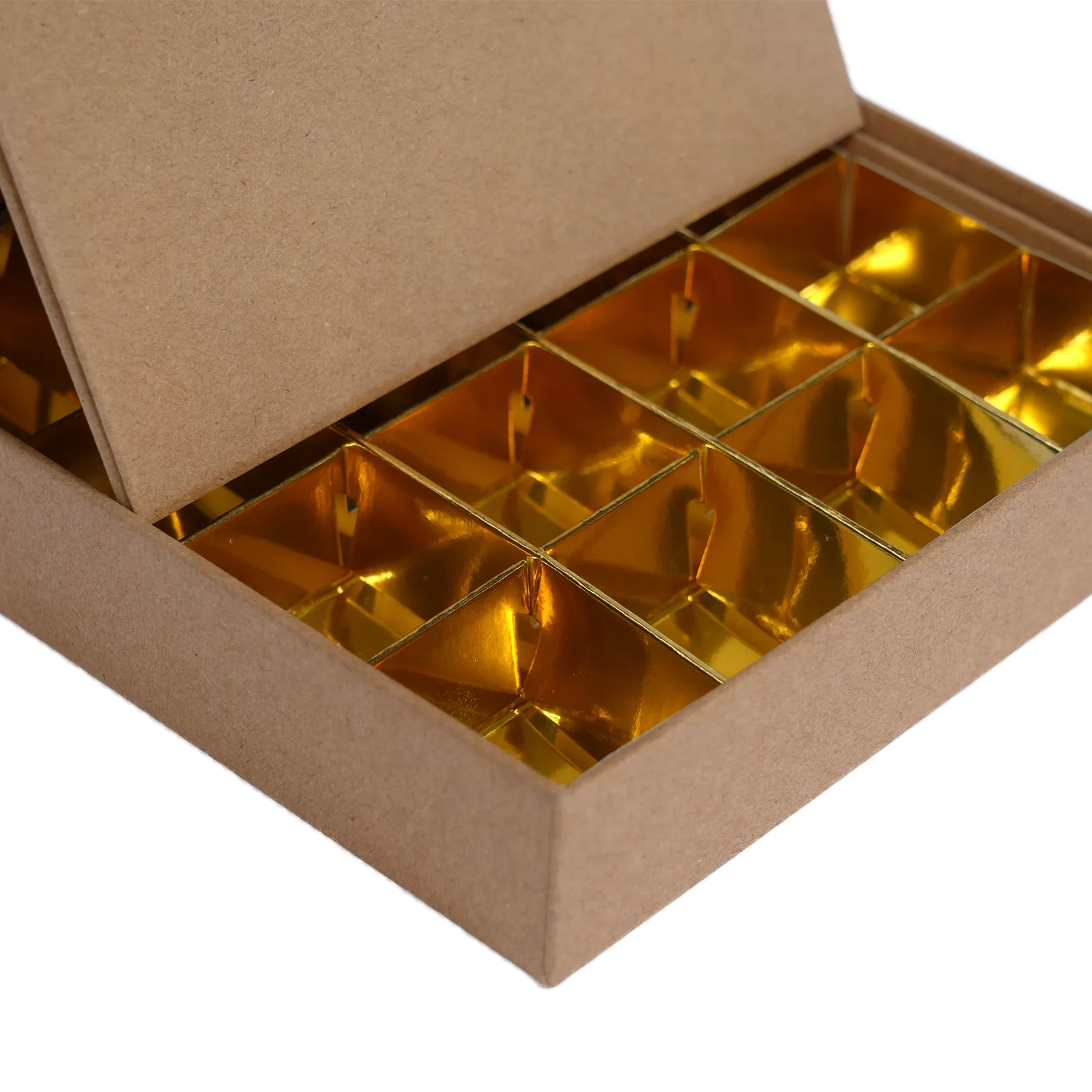 Geef jouw bonbons een warme, ambachtelijke uitstraling met de bonbon doosjes bruin met gouden interieur. Het natuurlijke bruine karton straalt ambacht en duurzaamheid uit, terwijl het glanzende gouden binnenwerk zorgt voor een luxe verrassing bij het openen. Deze combinatie van stijl en stevigheid maakt de doosjes ideaal voor chocolatiers, patissiers en cadeauverpakkingen.
