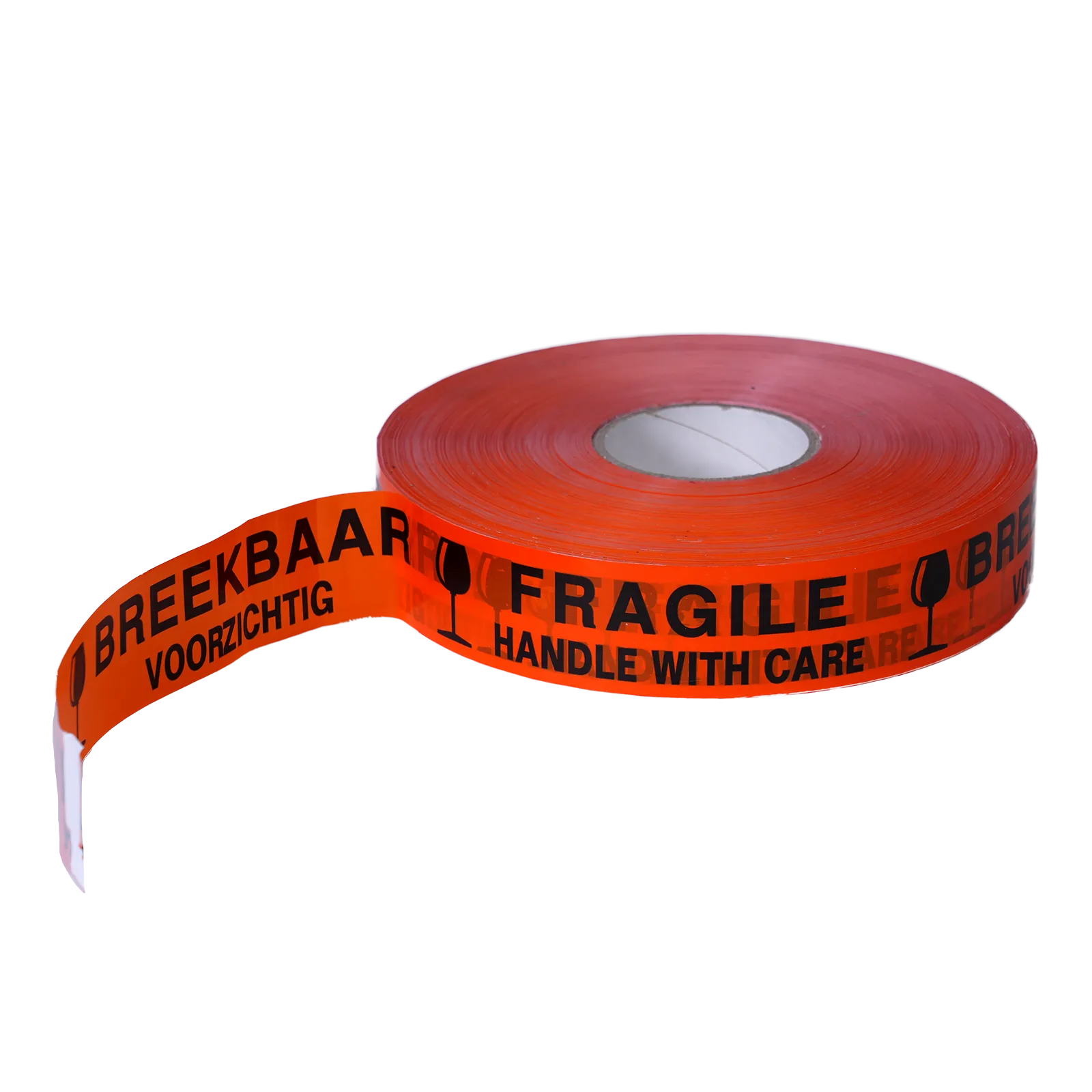 Verstuur je regelmatig breekbare pakketten en wil je zorgen dat ze veilig aankomen? Onze machinetape rollen met waarschuwingstape zijn ideaal voor bedrijven die vaak te maken hebben met grote hoeveelheden verzendingen. Deze opvallende tape waarschuwt duidelijk voor voorzichtigheid, zodat jouw producten altijd met zorg worden behandeld.